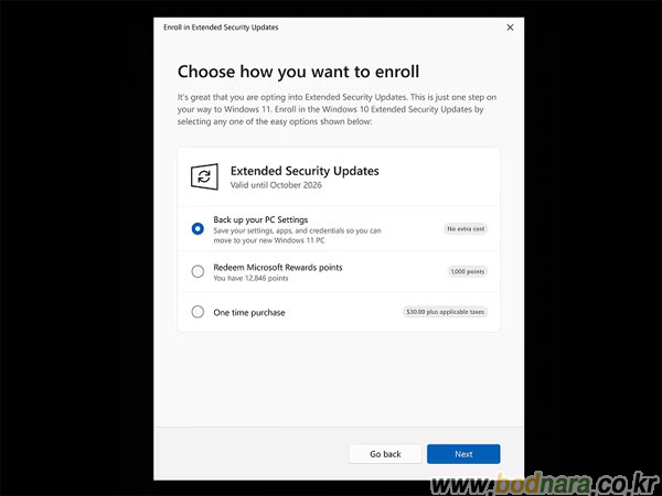 한편, 개인 사용자는 윈도우 업데이트 화면에서 제공되는 옵션창을 통해 윈도우 설정 동기화 활성화 조건으로 무료, 혹은 MS 리워드 포인트 1000, 미화 30달러 혹은 그에 상응하는 현지 비용을 지불하고 윈도우 10의 ESU에 참여할 수 있다.