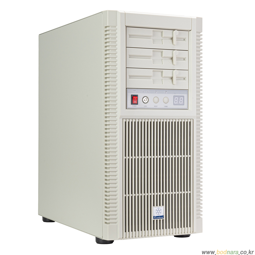 실버스톤 FLP02는 전작 FLP01이 구현한 플로피 디스크 스타일 디자인과 베이지 톤 컬러를 유지하면서도, 수직 타워 형태로 확장성과 냉각 성능을 대폭 강화한 것이 특징이다. 전면에는 5.25형 외부 베이 3개가 제공되며, 핫스왑 어댑터 케이지와 호환돼 레트로 드라이브 구성부터 최신 스토리지 확장까지 폭넓게 대응한다. 플로피 디스크를 연상시키는 전면 커버 디자인은 클래식 PC 감성을 충실히 재현하면서도 현대적인 완성도를 갖췄다.