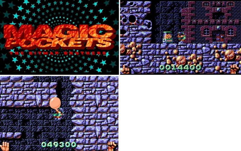 역시 비트맵 브라더스에서 제작한 명작 플랫폼 슈팅 게임인 '매직 포켓'은 주인공이 먹을 것으로 가득한 판타지 세계에서 자신의 주머니에서 회오리를 던져서 적을 맞추거나 가두는 형식으로 진행되는 게임입니다. 회오리의 경우 모아서 쏘면 좀 더 커지면서 적을 가두는데 이때 적을 터치하면 점수아이템이 나오고 커진 회오리로 다가가면 하이점프가 가능했죠. 비트맵 브라더스에서 제작한 게임인만큼 미려한 도트의 그래픽을 자랑했습니다(개인적으로 '가즈'와 더불어 비트맵 브라더스의 DOS판 액션 게임 중 최고봉이라고 봅니다)
